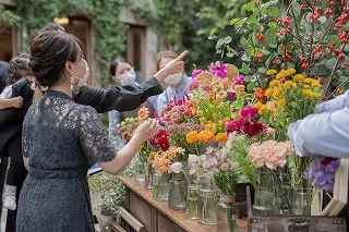 おふたりはもちろんゲストの皆さまにも参加型で楽しんでほしいとフラワービュッフェも取り入れられました!